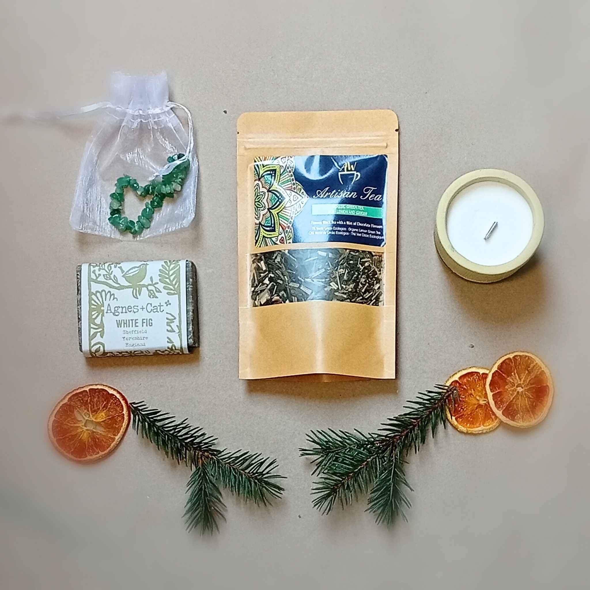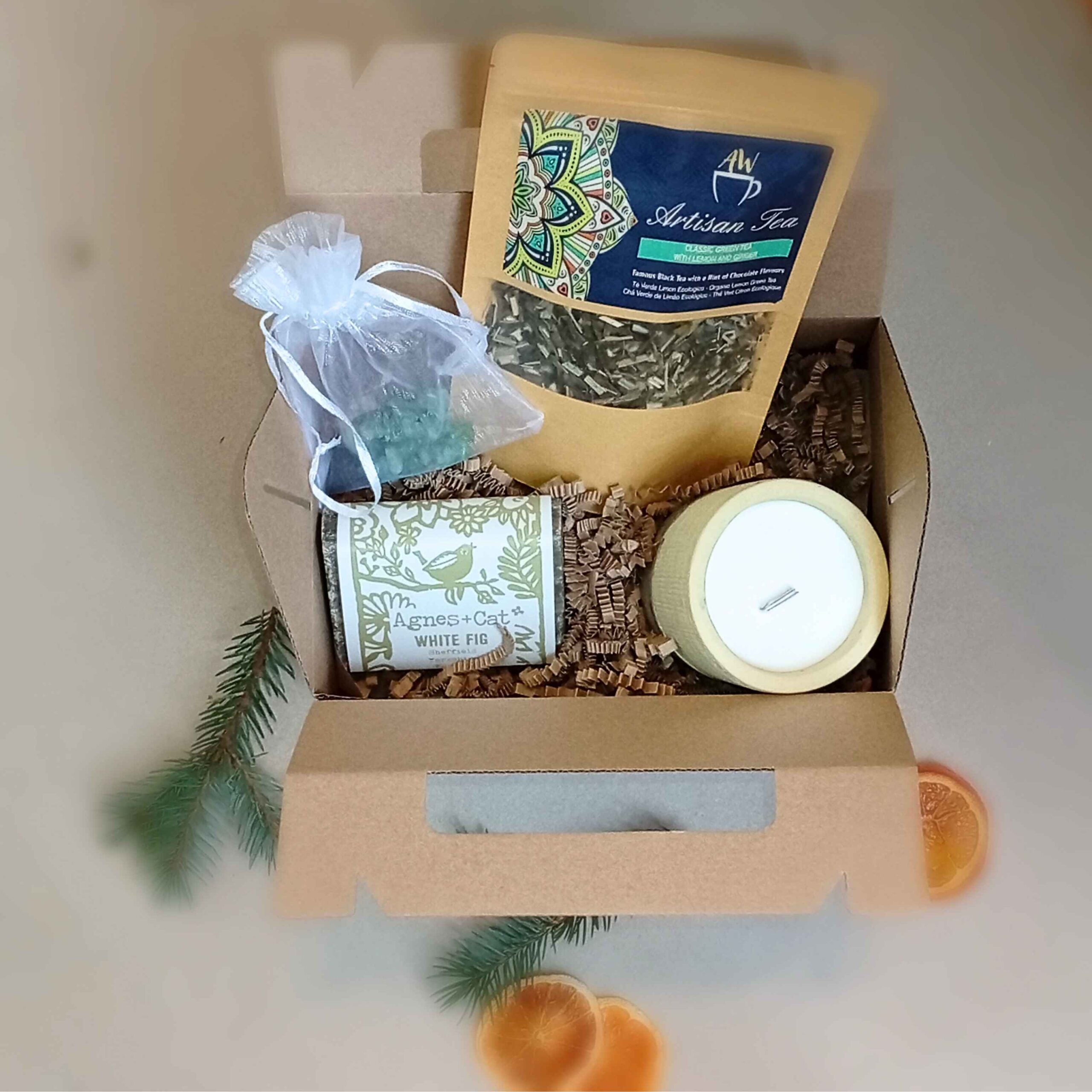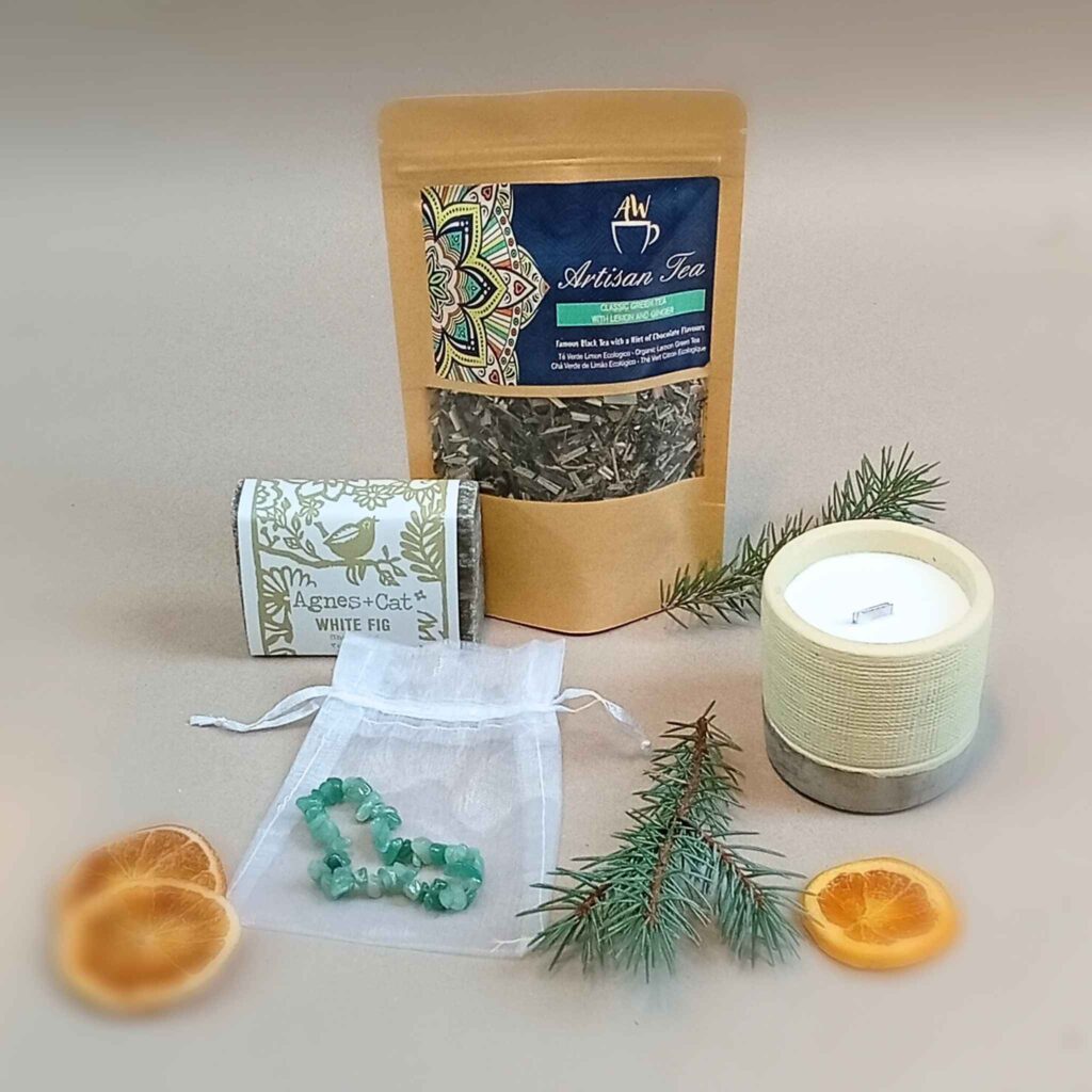 Természetes, elfogyó, illatos ajándék – benne ünnepi illatokkal, teával és apró, hangulatot teremtő kézműves darabokkal.